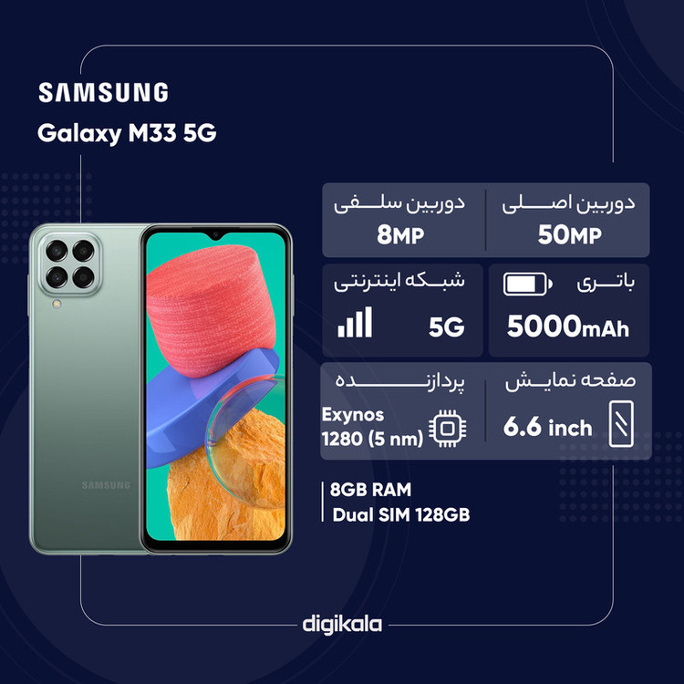 گوشی موبایل سامسونگ مدل Galaxy M33 5G دو سیم کارت ظرفیت 128 گیگابایت و رم 8 گیگابایت - ویتنام اکتیو