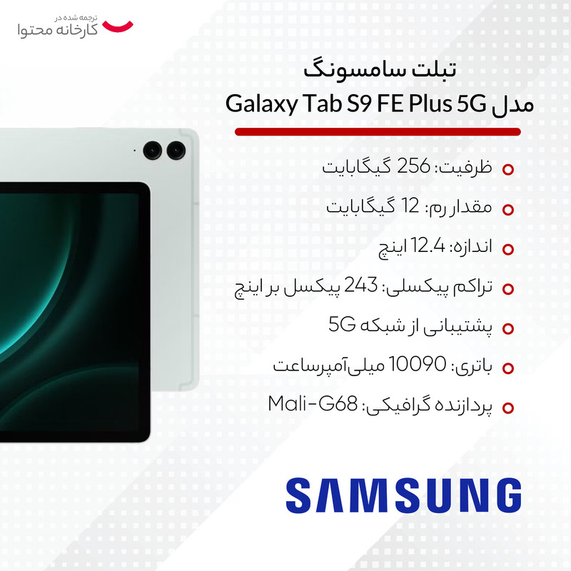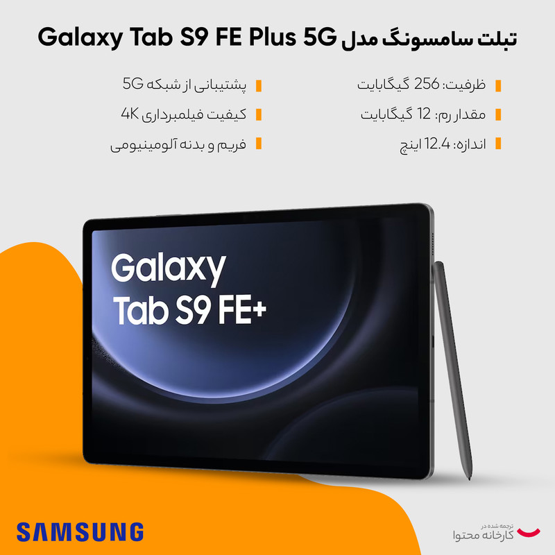 تبلت سامسونگ مدل Galaxy Tab S9 FE Plus 5G SM-X616B ظرفیت 256 گیگابایت و رم 12 گیگابایت به همراه قلم