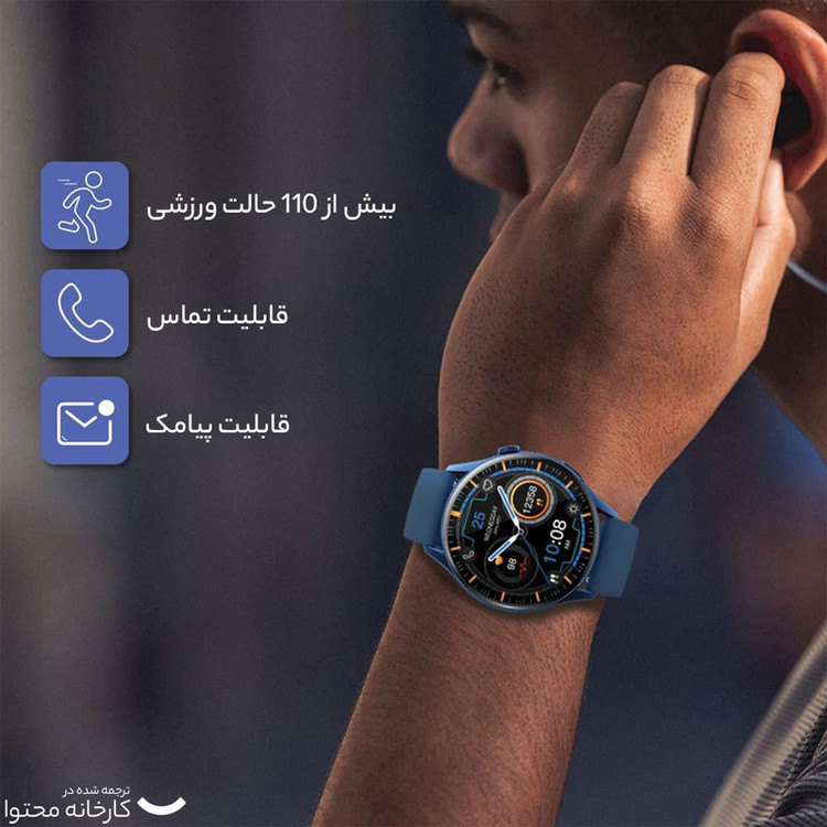 قابلیتهای ساعت هوشمند : صفحه نمایش رنگی , صفحه نمایش لمسی , کنترل سطح اکسیژن خون , پشتیبانی از زبان فارسی در منو و سیستمعامل