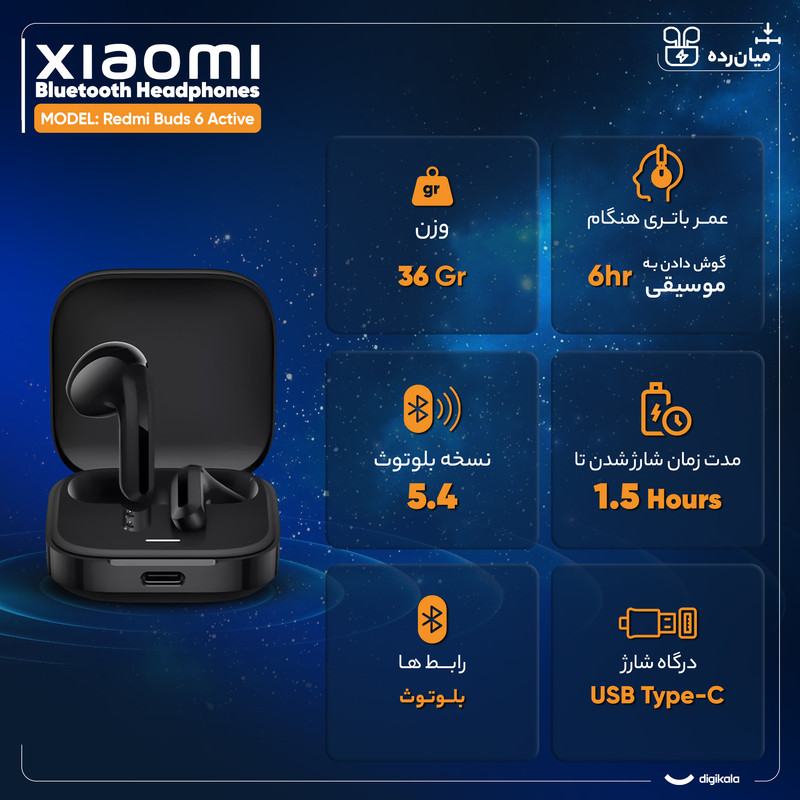 هدفون بلوتوثی شیائومی مدل Redmi Buds 6 Active