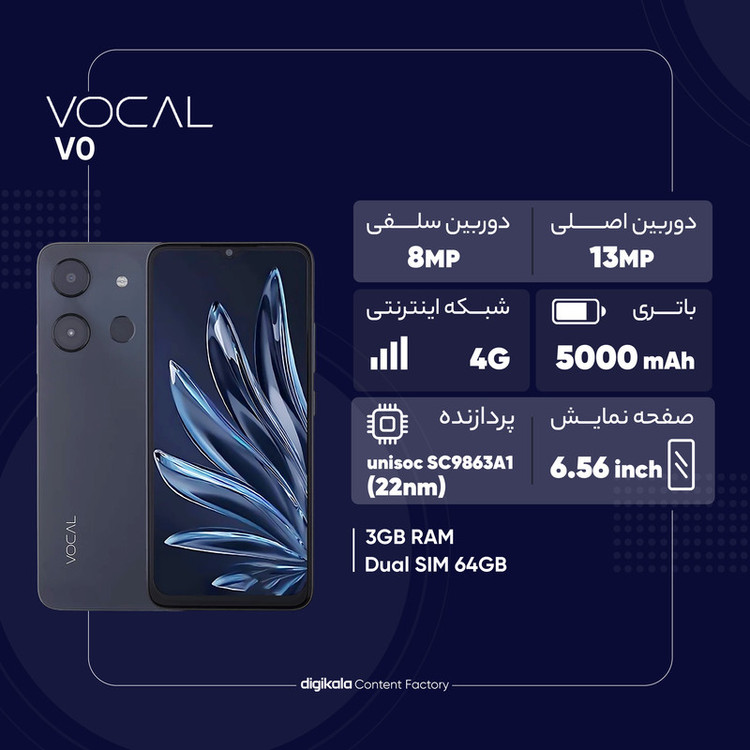 گوشی موبایل وکال مدل V0 دو سیم کارت ظرفیت 64 گیگابایت و رم 3 گیگابایت - به همراه قاب